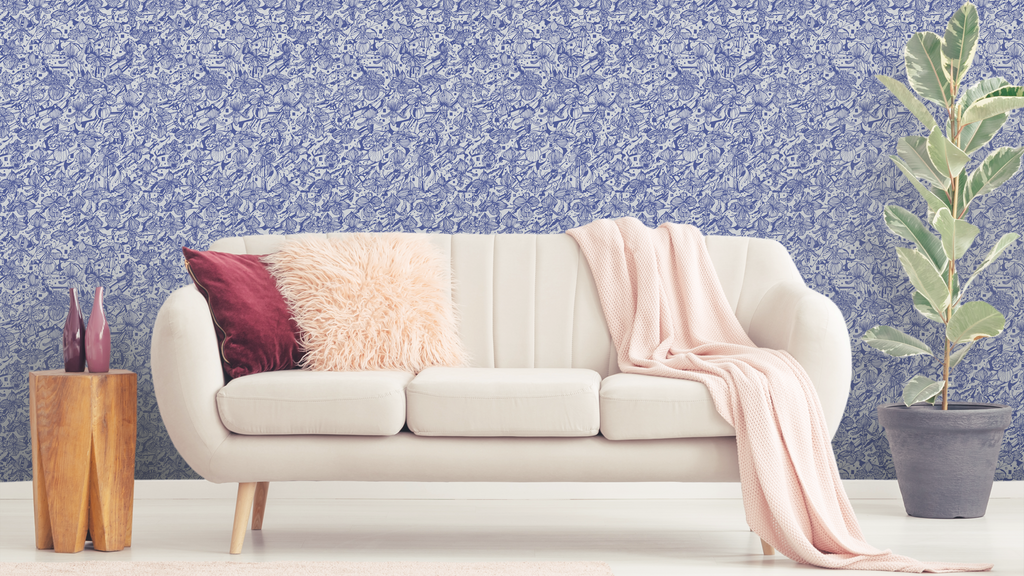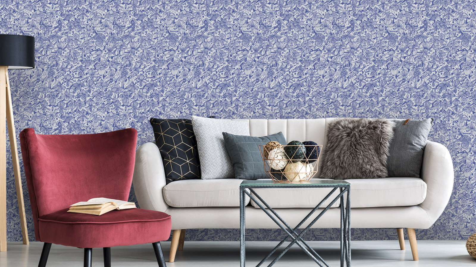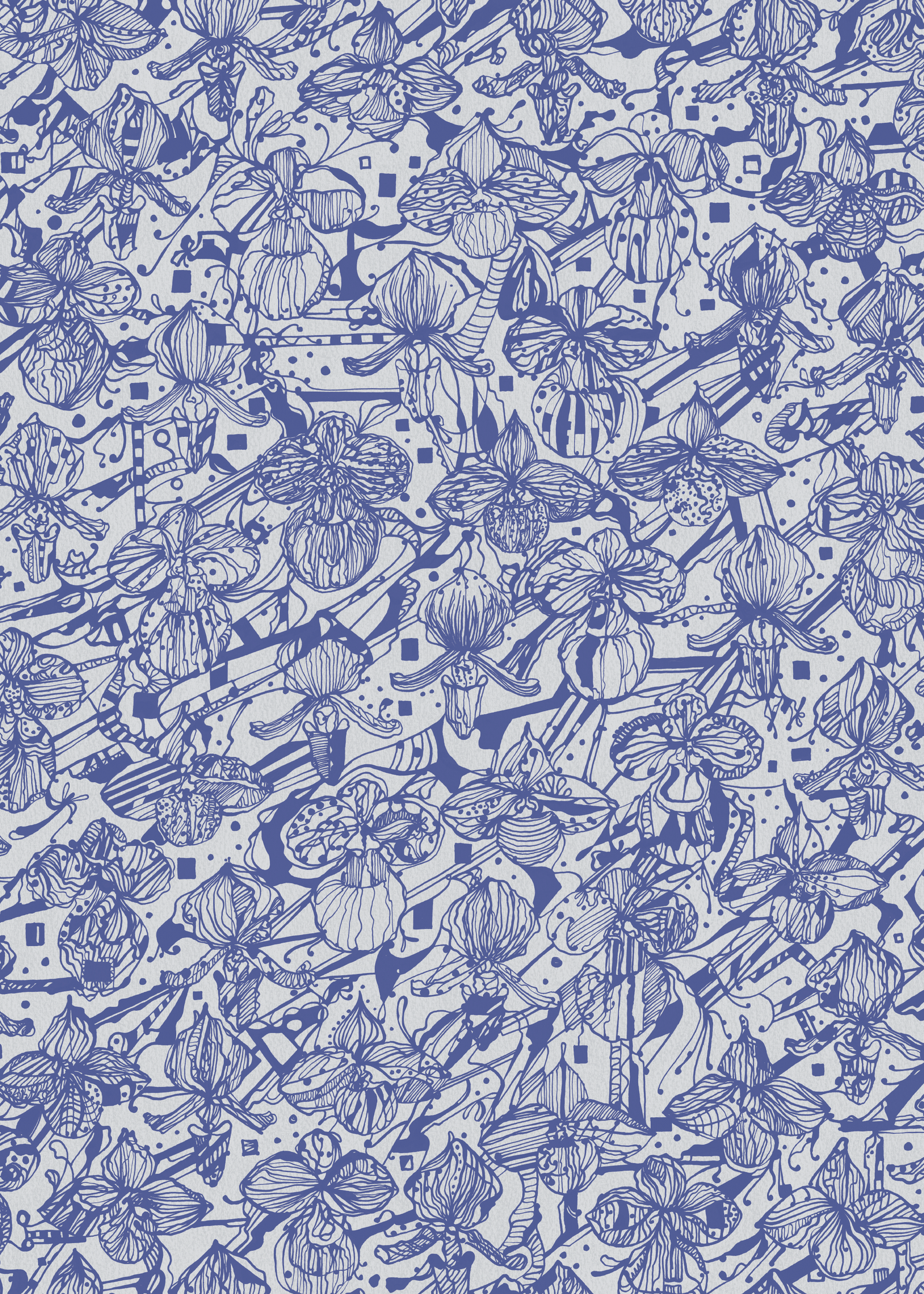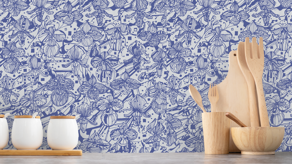Orkidéblomma - Vackert koltecknade blommor på en sober dimmlik botten. Passar perfekt som fondvägg och övriga väggar tapetseras med tapeten Dimma.